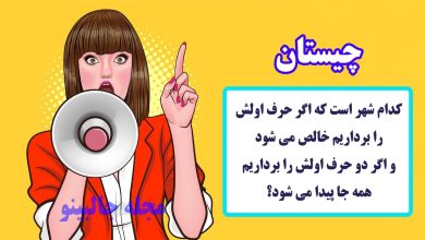 کدام شهر است که اگر حرف اولش را برداریم خالص می شود و اگر دو حرف اولش را برداریم، همه جا پیدا می شود؟